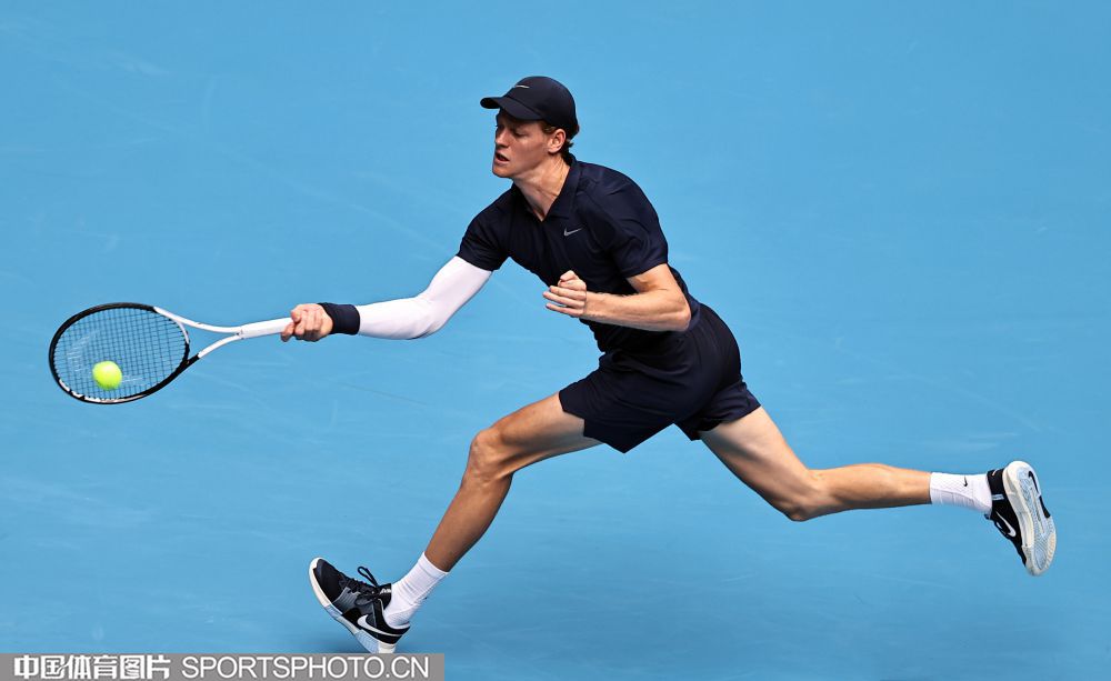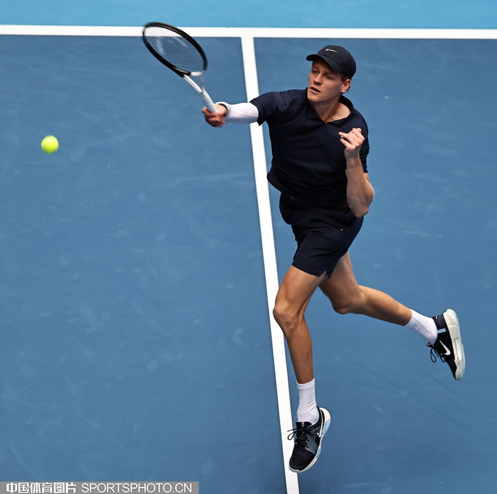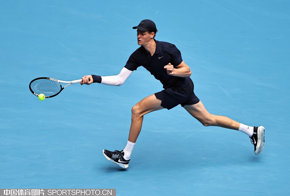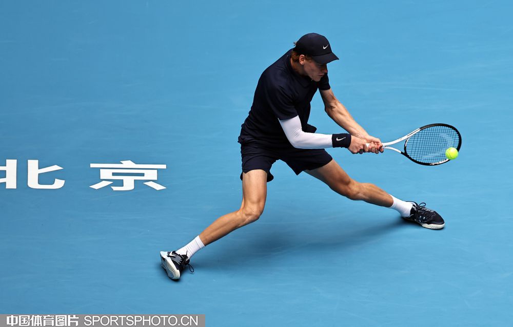 2025年10月1日,2025中国网球公开赛在国家网球中心进入第七个比赛日。在男子单打决赛中,海意大利选手辛纳2比0战胜美国选手勒纳·钱,夺得2025中网男单冠军。图为辛纳在比赛中。(中国体育图片 王宪民 摄)