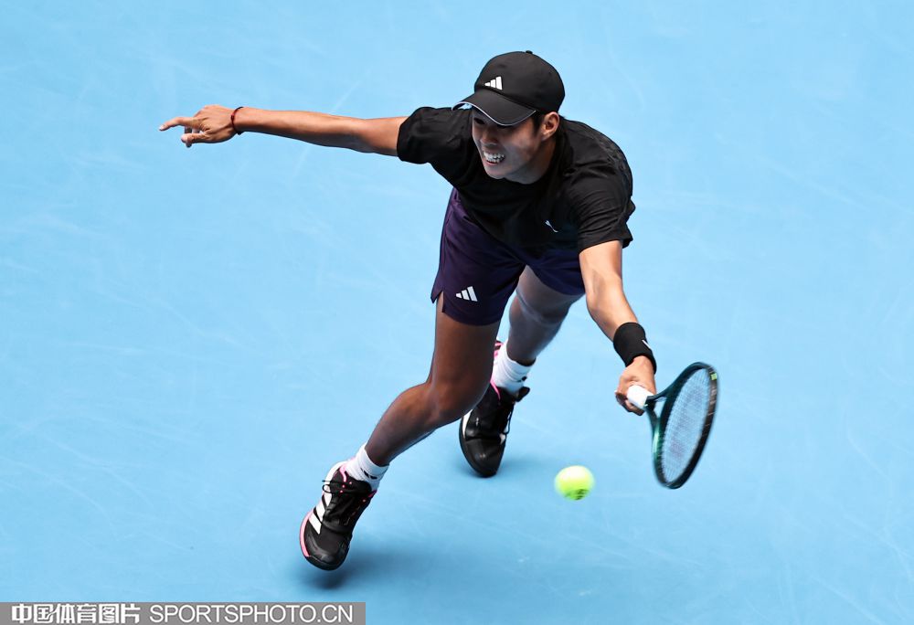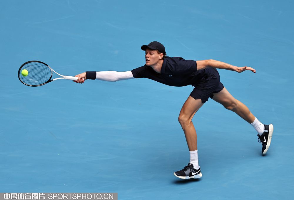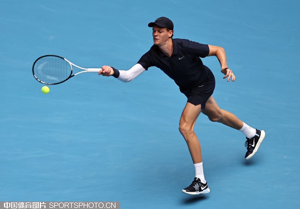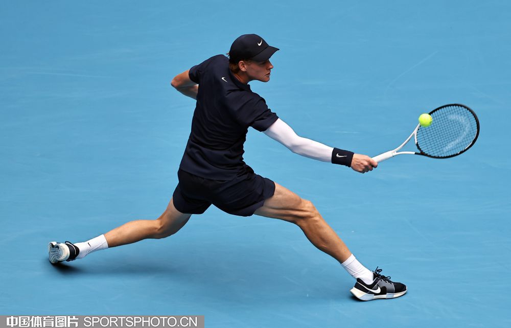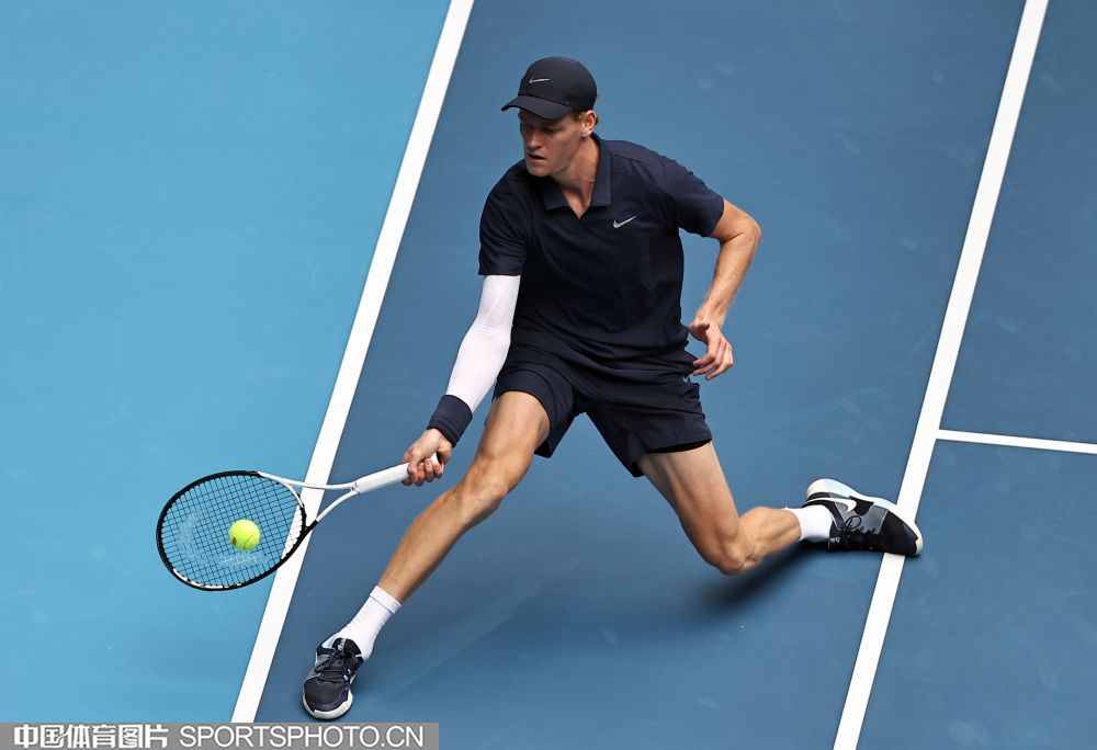 2025年10月1日,2025中国网球公开赛在国家网球中心进入第七个比赛日。在男子单打决赛中,海意大利选手辛纳2比0战胜美国选手勒纳·钱,夺得2025中网男单冠军。图为辛纳在比赛中。(中国体育图片 王宪民 摄)