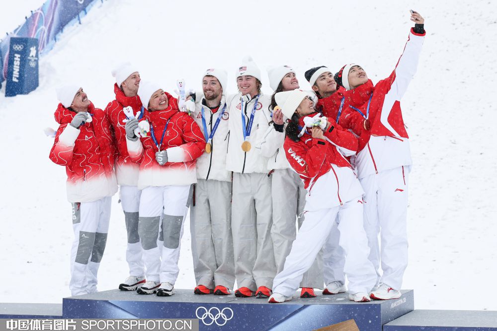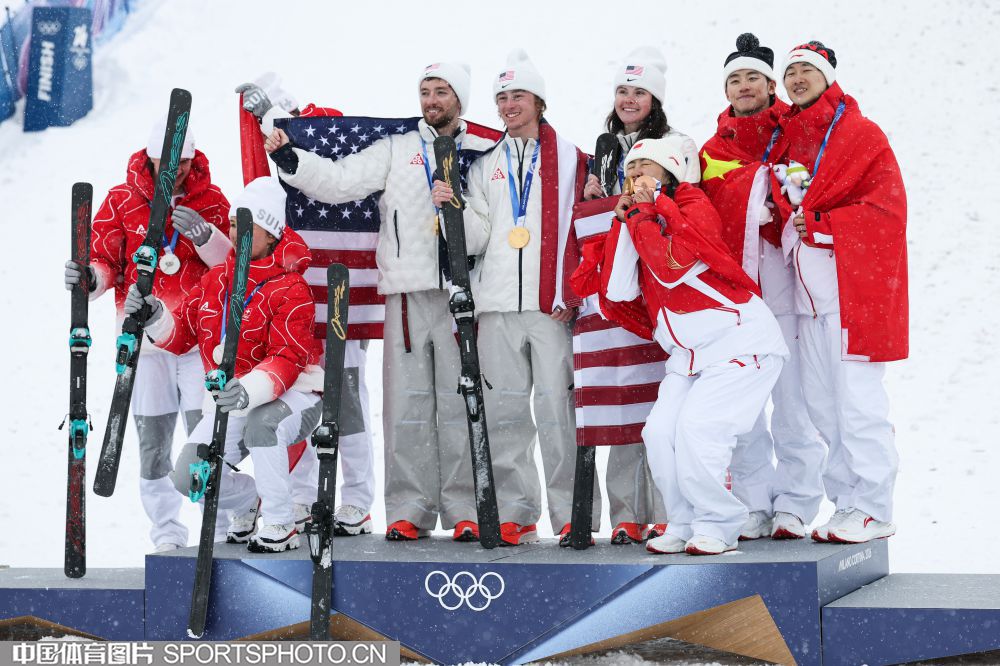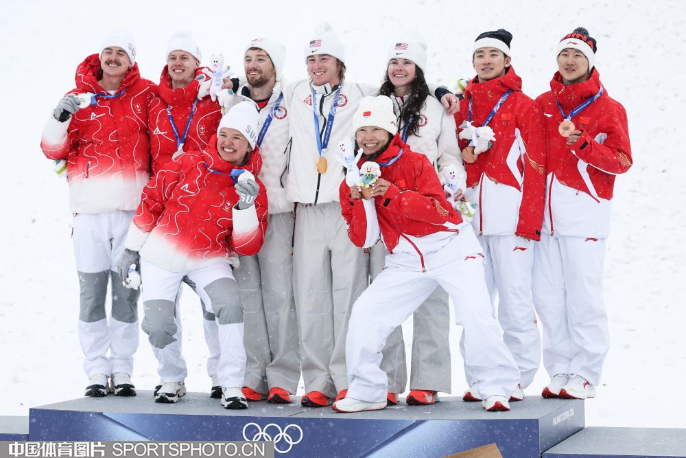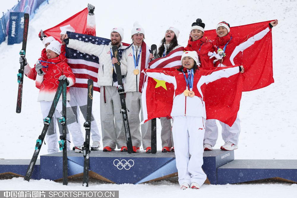 图组名称:米兰冬奥会自由式滑雪空中技巧混合团体决赛 中国队夺得铜牌