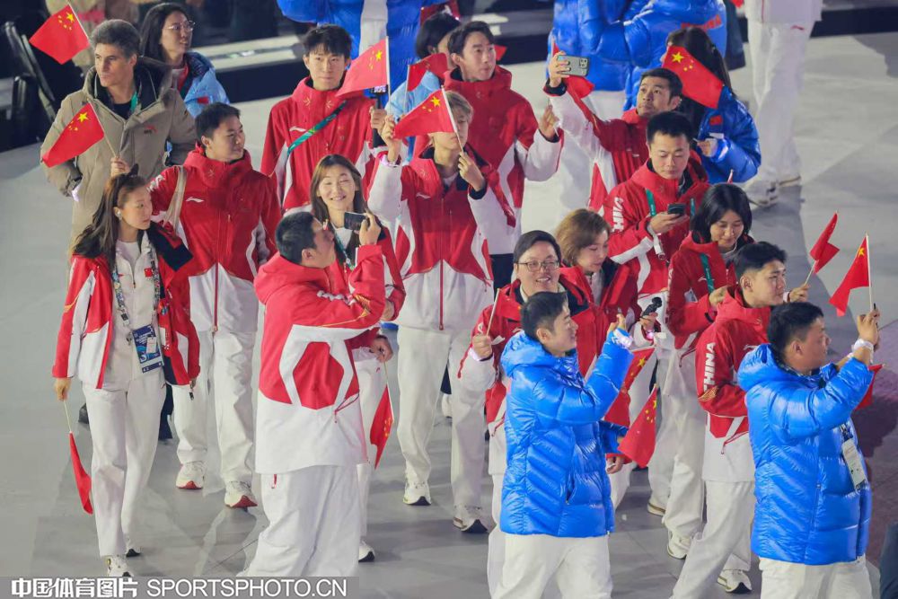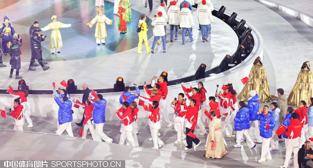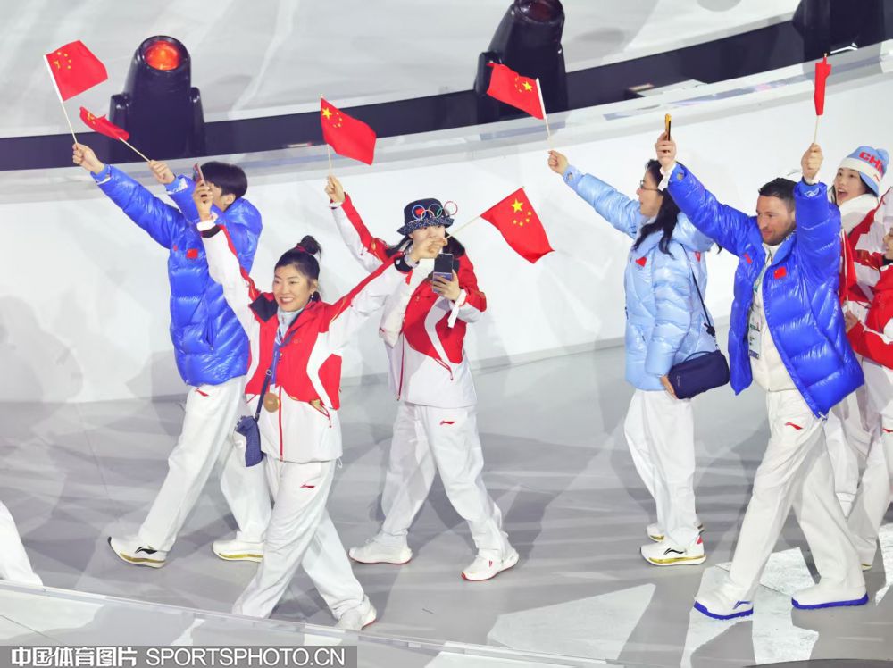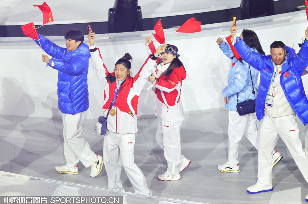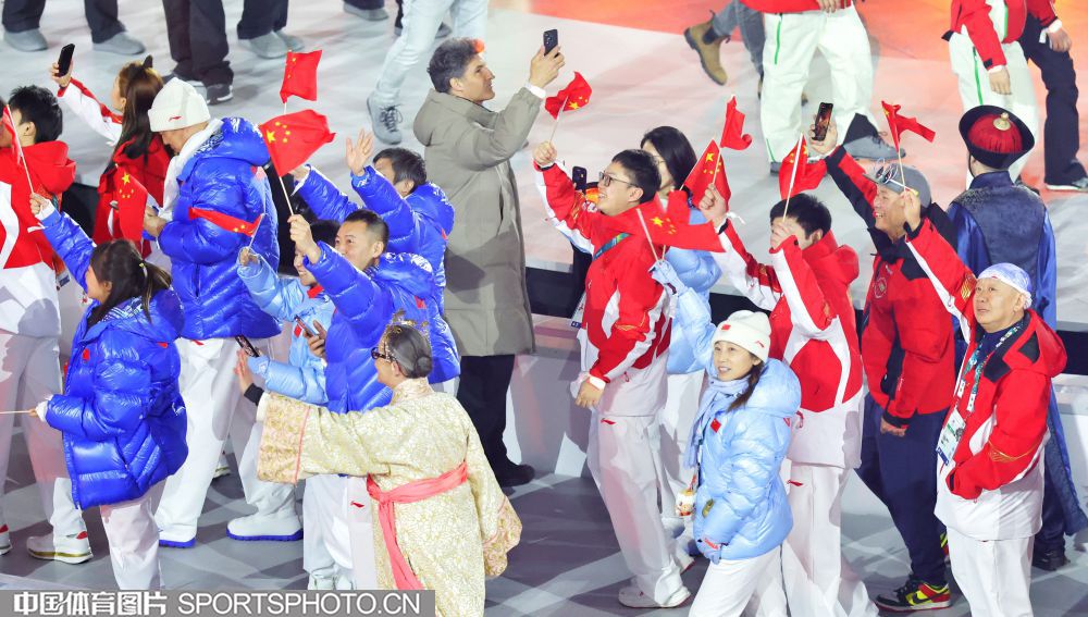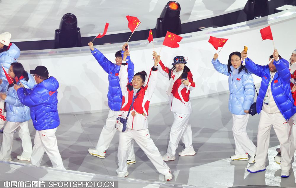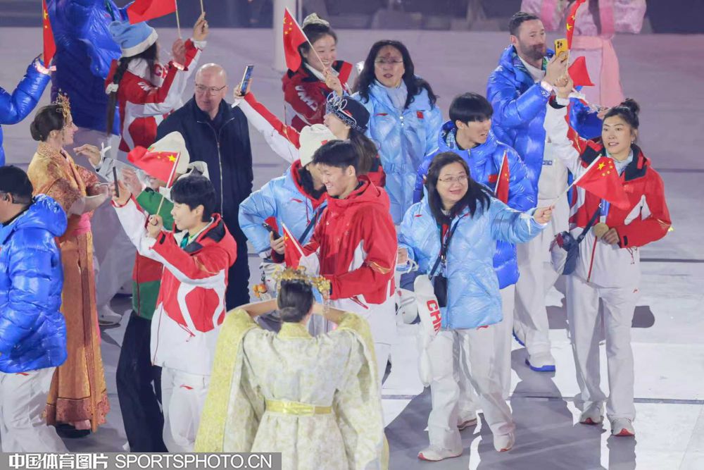 图组名称:第25届冬季奥运会闭幕 中国体育代表团入场