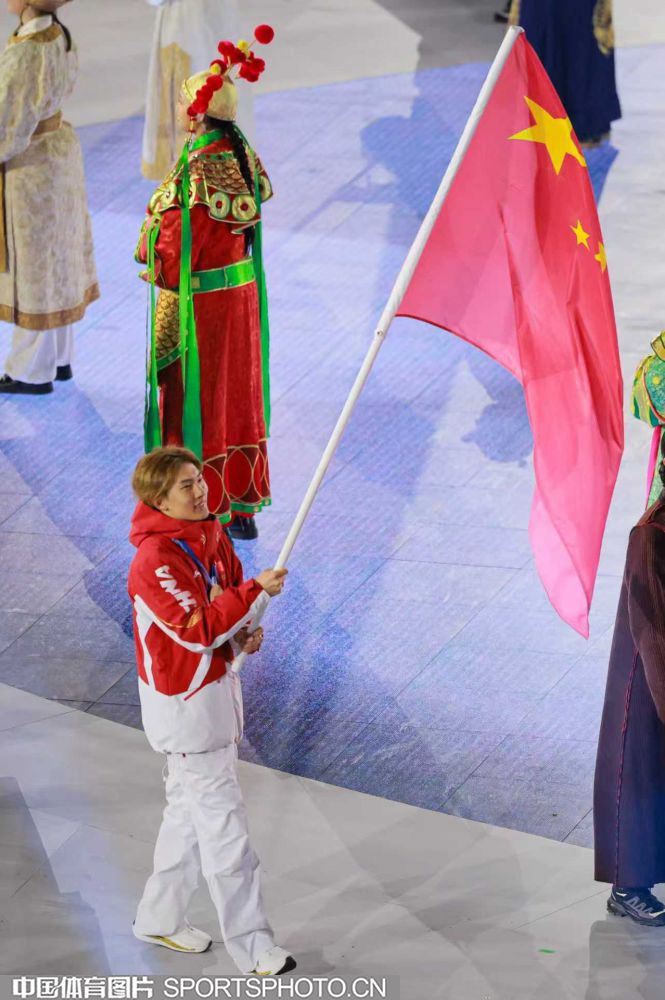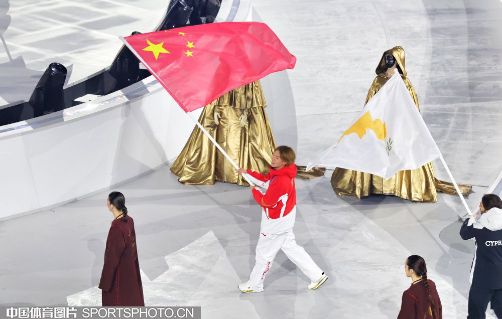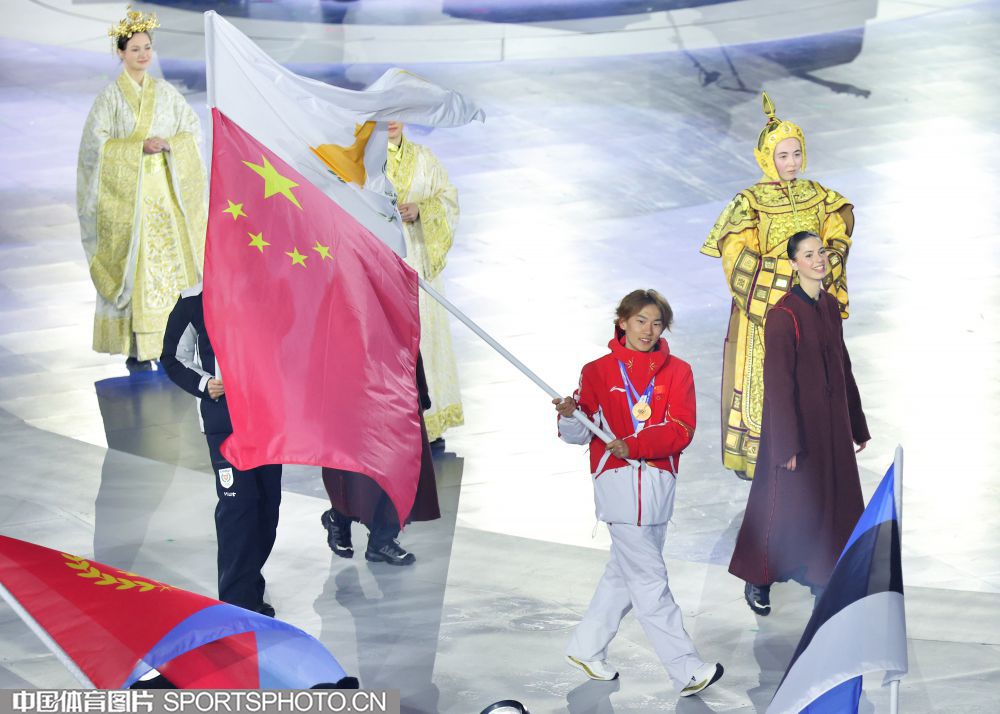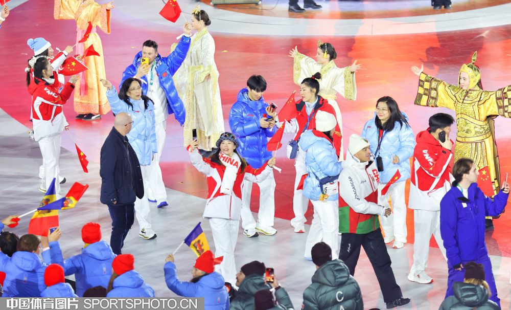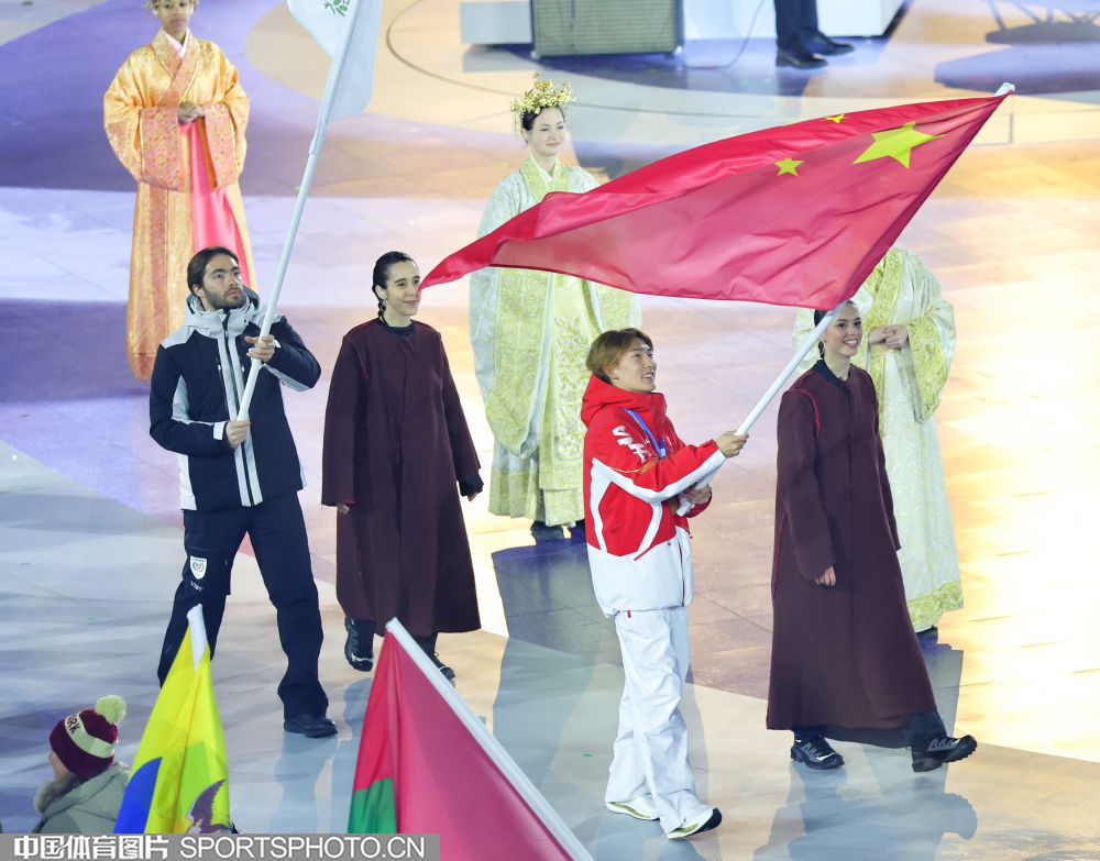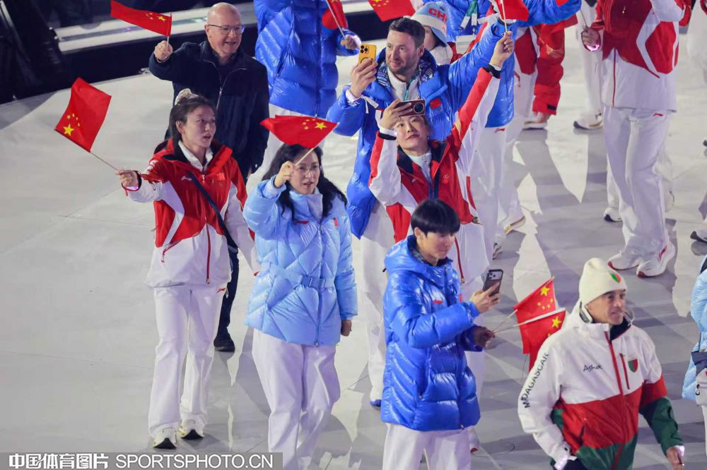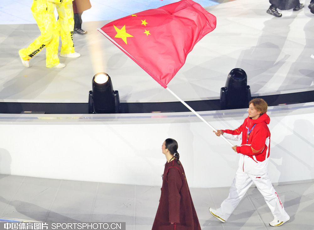 图组名称:第25届冬季奥运会闭幕 中国体育代表团入场