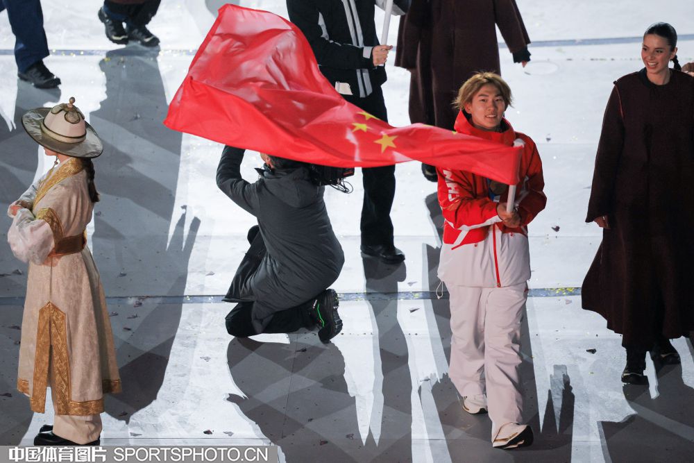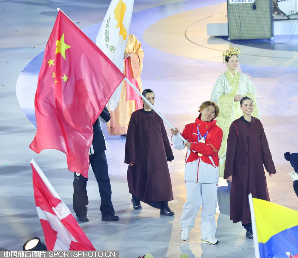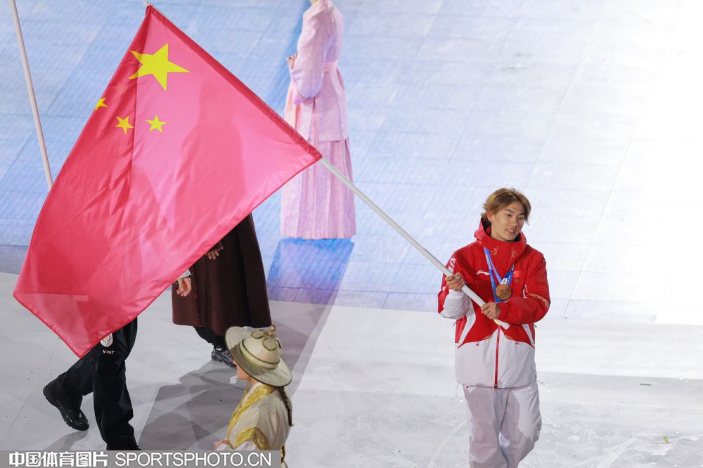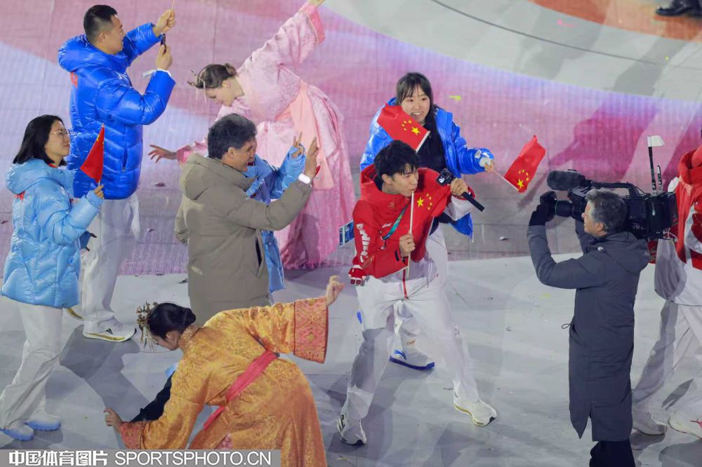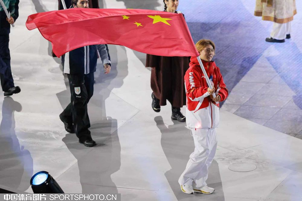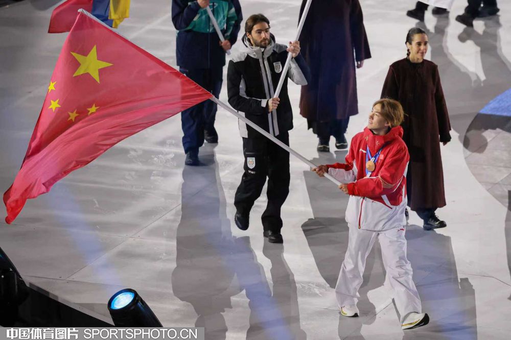 当地时间2026年2月22日晚,第25届冬季奥运会闭幕式在意大利维罗纳圆形竞技场举行。图为米兰冬奥会单板滑雪男子坡面障碍技巧冠军得主苏翊鸣引领中国体育代表团入场。(中国体育图片 白宇 摄)