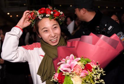 中国花样滑冰队队员观看中国体操队训练