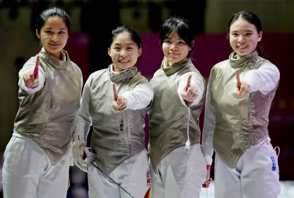 全国击剑锦标赛女子佩剑团体决赛 夺得冠军